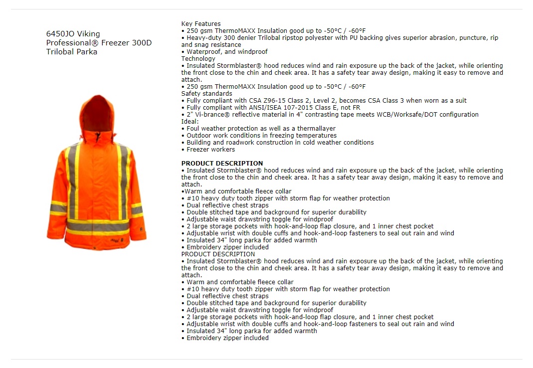 6450JO Viking Professional® Freezer 300D Trilobal Parka