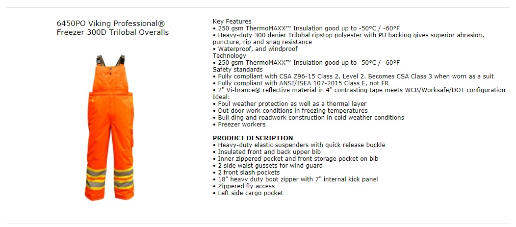 6450PO Viking Professional® Freezer 300D Trilobal Overalls